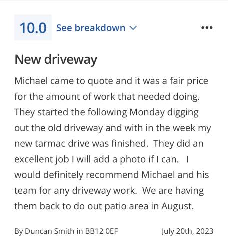 Happy to recommend these people they did a good job and built my drive at a reasonable price. Lots of work went in to it and Michael couldn’t be more helpful and polite to deal with.