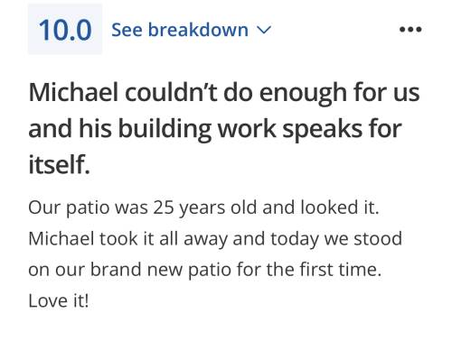The guys were excellent and hard workers. The finished product (patio) looks fantastic with a guarantee to be able to call if there are any issues in future. Work was done quickly and professionally, I'm extremely happy. Thank you