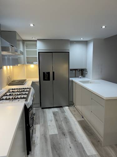Dear Customer we are a family run business in the joinery and kitchens, we take great care and detail when fitting, we have our own team of plasterers, builders, electricians, Decorators and gas fitters for when requested on a particular job, My team clean up every day,we also offer a 2 year workmanship guarantee many thanks