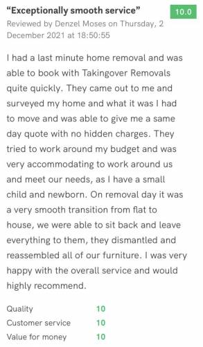Taking Over RemovalsAbout Our Reviews: The reviews contained on this page have been submitted by users of our service who have had a job completed by a verified trade member. We operate a closed loop feedback system which protects our users from fake reviews. To understand more about our reviews process, please visit our Reviews Policy.