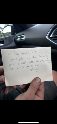 Great job very well finished ...in addition to the chimney flashing repair work Todd also fixed my guttering and took down old tv aerial .... Todd also gave me some good advice on current roof.