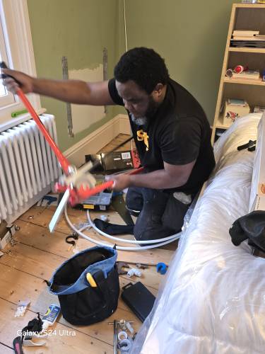 Great communication. Arrived fully equipped for the job. Completed in good time at a sensible price. The work looks well done, neat and tidy. Cleaned and tidied up afterwards too. Will definitely use again in the future