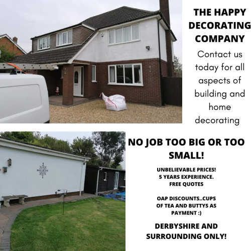 The happy decorating company... here for all your decorating needs. From wallpaper hanging to full house refurbishments. We're here to help! From small to big. Feel free to call or message us at any time thankyou very much