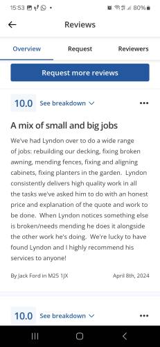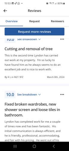 Lyndon has just assembled 2 flat pack wardrobes and did a fabulous job. Very helpful, friendly and very reliable. I would definitely ask Lyndon to undertake any future work for me.