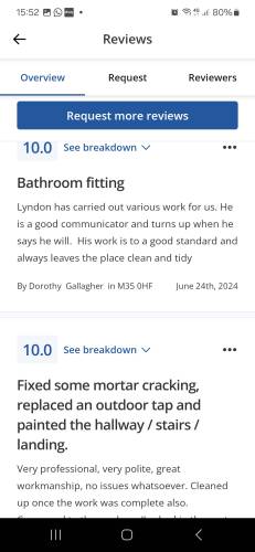 About Our Reviews: The reviews contained on this page have been submitted by users of our service who have had a job completed by a verified trade member. We operate a closed loop feedback system which protects our users from fake reviews. To understand more about our reviews process, please visit our Reviews Policy.