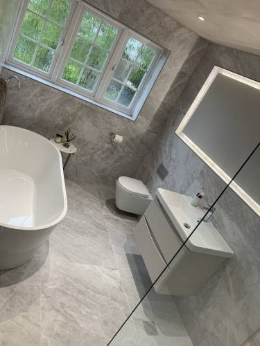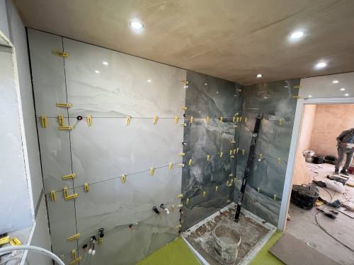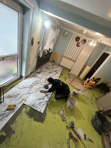 • Installation of floor and wall tiles (ceramic, porcelain, marble).