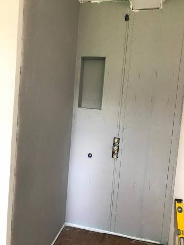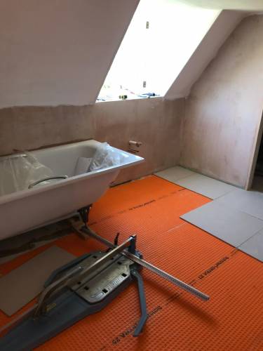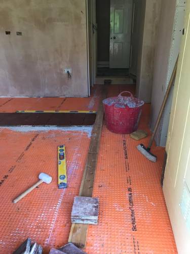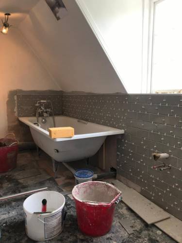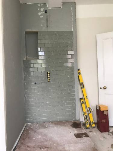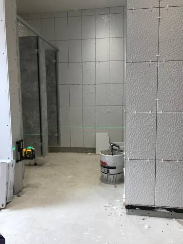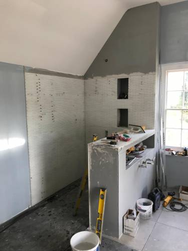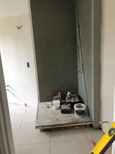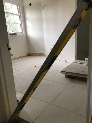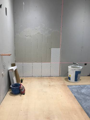 Clean walls and floors in preparation for tiling work