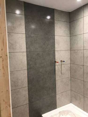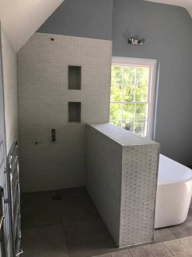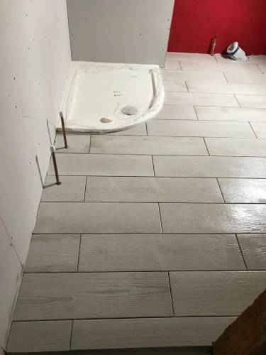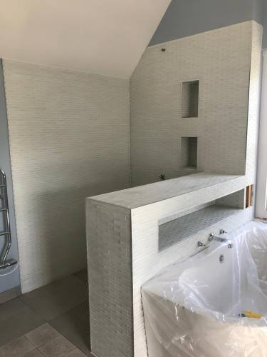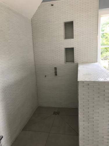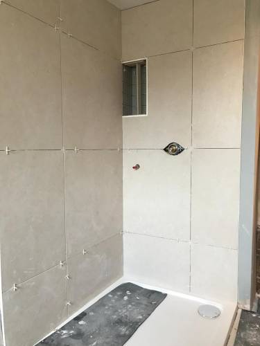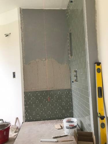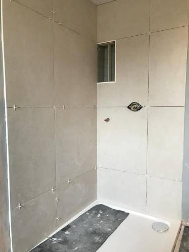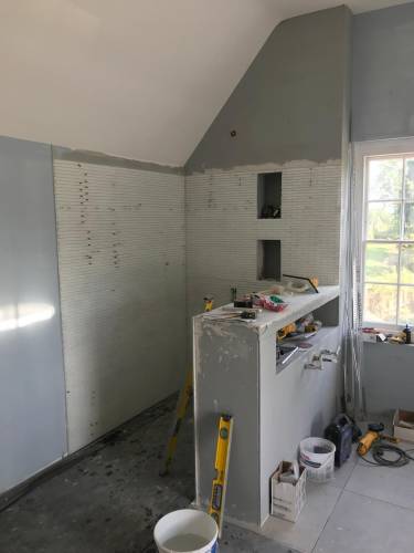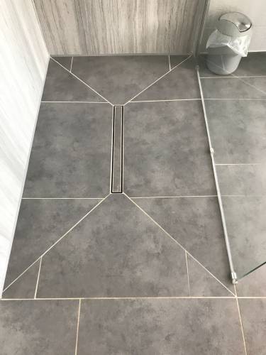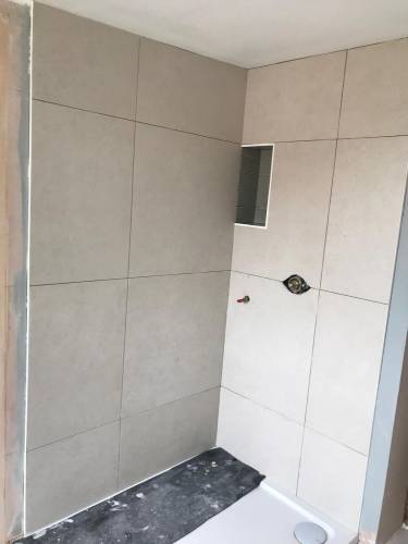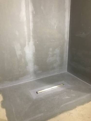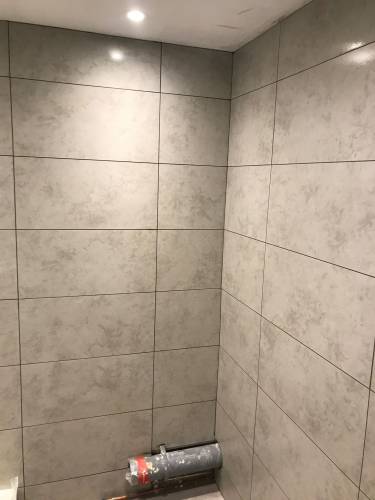Grout tiles and apply waterproofing systems to surfaces