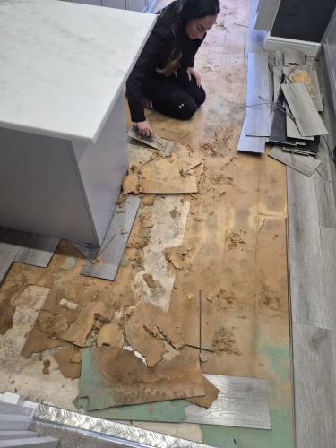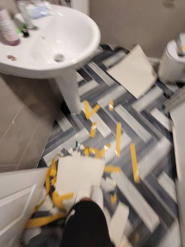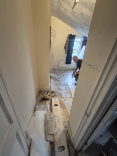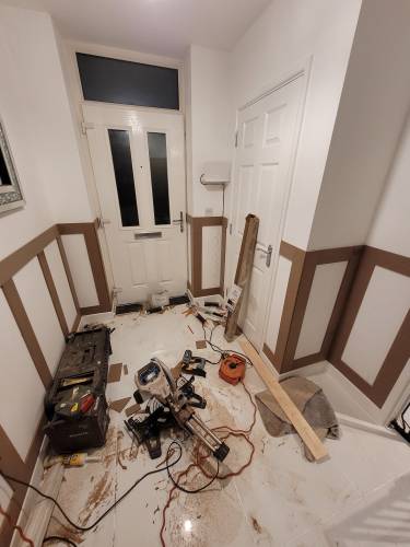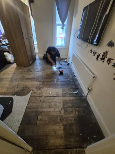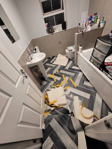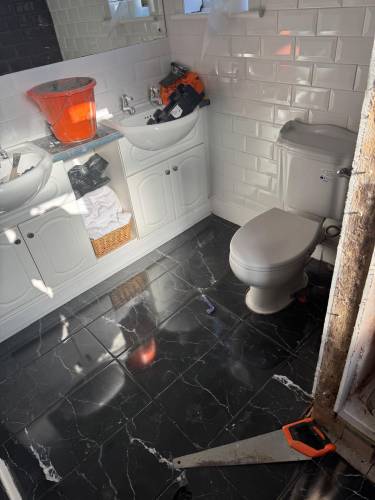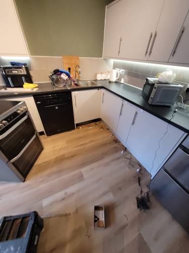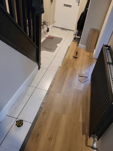 TJ Luxe Flooring & TilesHussain did some work for us, and to his credit managed to fit us in just before Christmas, on the 23rd December 2025. He fitted underlay and laminate in a small hallway and bathroom. There were a lot of issues or unfinished aspects of the job, which we discussed over the phone and he agreed to come back after Christmas to put them right. These issues were: 1. Huge scratches and scuffs on the laminate he installed 2. He managed to bend a water pipe in the bathroom resulting in a leak & removed our sink pedestal without fitting it back in (this was because he didn't cut around the pedestal resulting in the pedestal being 13mm higher and wouldn't fit around the sink, he then tried to force it back under the sink which resulted in scratches and damages on the floor, and the pipes coming away from the sink basin, causing a leak. He tried to improperly repair the leak by covering the pipe with silicone, however water in the system pushed through this and required a plumber to come out and reinstall sink components) 3. A totally uninstalled tile just resting behind the toilet 4. Ruined door frames where he had cut them too high and uneven to fit the laminate in 5. Creaking laminate where it wasn't installed properly with sufficient underlay which he blamed on an uneven floor, however the previous laminate did not creak. We agreed on a date when he could come to fix the issues, which he later delayed as he had taken on other jobs. He then agreed to refund us partial installation costs so we could get another contractor in to fix his mistakes. We have yet to receive this money from him, well over a month after we raised the issues, as he has made continual excuses for not sending it.