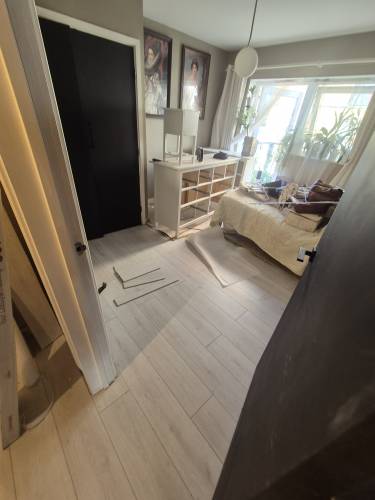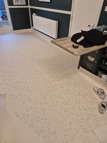 Hussian did an excellent job. He arrived punctually on both days, carefully screeded the floor, and installed the vinyl sheet with great precision. The finish was perfect, and his price was very competitive.