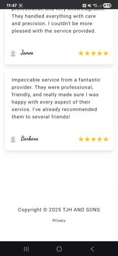 With an experienced team by my side, we offer a wide range of services tailored to meet the diverse needs of our clients. Each member of our team shares a commitment to quality and integrity. I pride myself on maintaining open communication, ensuring you are informed and involved throughout the entire process. From the initial consultation to project completion, we work diligently to exceed your expectations and stay within budget. Choose TJH AND SONS for a reliable and personal approach to construction, where your satisfaction is my priority.