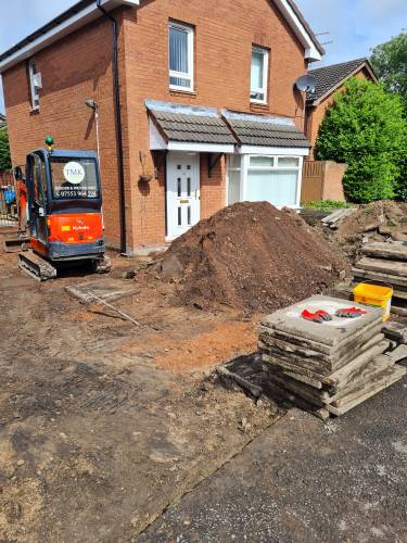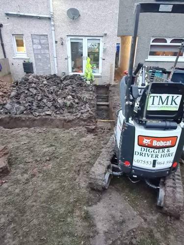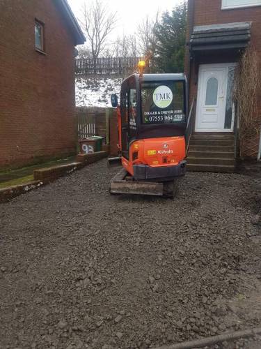Mini and micro diggers and operator for hire and track barrow,all over Glasgow and surrounding preparation of driveways,gardens,foundations hedge removals , all digging work carried out can arrange removal of soil and can supply of type1 over 20years experience citb registered on diggers 10t above and below,first aider, swar streetworks registered 8parts fully insured can all so find us on Google and fb at TMK digger and Groundworks and see some of the jobs we have carried out for customers. Happy to help.