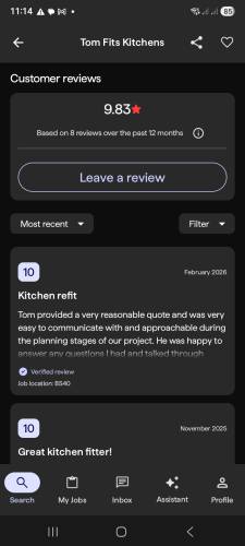 Kitchen fitting specialist with over 16 years experience. Pride myself in accuracy and attention to detail. New to My job quote, reviews can be found on facebook or on checkatrade.