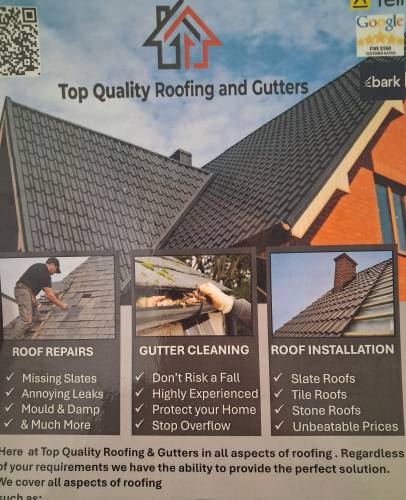 Top quality roofing and guttersQuick response, pleasant chaps. Pointed out problems and fingers crossed resolved them!