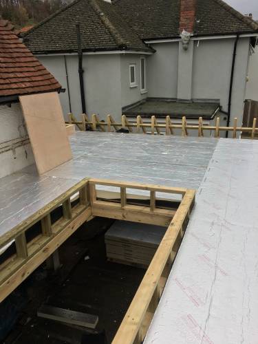 Flat roofing- 3 layer felt system, GRP fibreglass and EPDM rubber