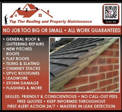 Top tier Roofing and Property Maintenance provides reliable, high-quality roofing and property maintenance services for residential and commercial clients. We specialise in roof repairs, replacements, and ongoing property upkeep, delivering durable workmanship, honest advice, and dependable service every time. Customer satisfaction and long-lasting results are at the heart of everything we do.