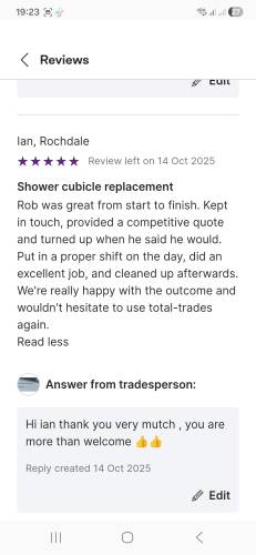 There are currently no reviews for this tradesperson. If you've had a job completed by them in the past, leave a review below.