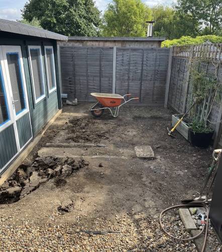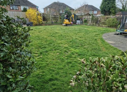 The unpleasant job of removing my existing turf and very wet clay under it was completed by hand as they could not bring any machinery over my existing block paving. This was a messy and unpleasant job. The clay was replaced with very good quality loam soil and then new high quality turf. The work was completed in less than two days.