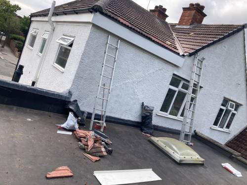 I would never use this builder again. He came to repair my leaking roof and recommended that my entire tile roof needed replacing with a felt roof due to its low pitch. He seemed knowledgeable and energetic but I felt completely steamrolled by him. I agreed to the written quote of £4900 but then had to pay £1950 for the materials upfront. He promised a crew of 6 guys to do the job in one day, this did not happen. The work was planned for a Monday but due to a good weather forecast he brought it forward to Saturday . Three guys( Who it later turned out where not know to him but where subcontracted by some one else) came and demolished my roof leaving a pile of un bagged rubble in the garden. I was left without a roof for two nights in heavy rain causing even more water damage to my roof, ceiling and flooring. He did not come to the house to put a tarpaulin over it as he promised on the phone on Saturday evening. On the Monday morning the builder tried to get out of coming to the house as he said he had no men and the weather was bad . We insisted that he came to make the roof water tight. He tried to make amends by single handedly working to complete the roof on the third day and offered me a reduction to the bill of £400 but then charged me extra £200 to remove the rubble despite it being part of the original quote. H gave me the impression that he would not have taken it if I had not paid the £200. He did not complete the job according to the written quote as the guttering has not been connected so water is pouring across the roof when it rains. The builder has been polite but hard to get hold of to sort problems and kept giving different excuses for problems . I didn’t feel that his labourers respected my home, they left my doors wide open when they left my house with out anyone knowing where they had gone not even the boss. This builder seemed to me to have a very chaotic management of his crew. In my opinion the roof shows very poor quality workmanship it looks more like a farm out building rather than a home. It looks terrible and rainwater is still pouring in. I would not recommend this builder.