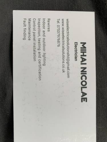 I highly recommend Mihai Nicolae of Wise Electrical Solutions. I engaged him to carry out an EICR and to replace the fuse box. He was extremely reliable, kept to his word, and provided clear explanations throughout the process, with regular updates. The quality of his workmanship was excellent. I would have no hesitation in using his services again and recommend him.