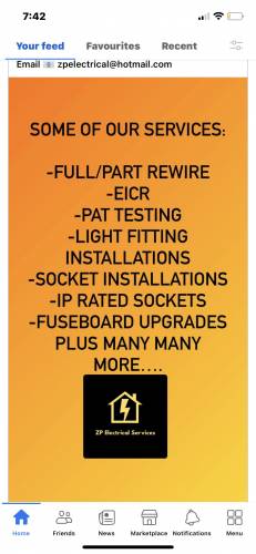 I’m a self-employed electrician with over 6 years experience. Level 3 diploma in electrical engineering and installation, 18th edition certified. I am sssts certified and dbs checked. I undertake all aspects of electrical installations, eicr, pat testing, fuse board changes, light fittings, sockets, ip rated sockets etc no job is too big or small.